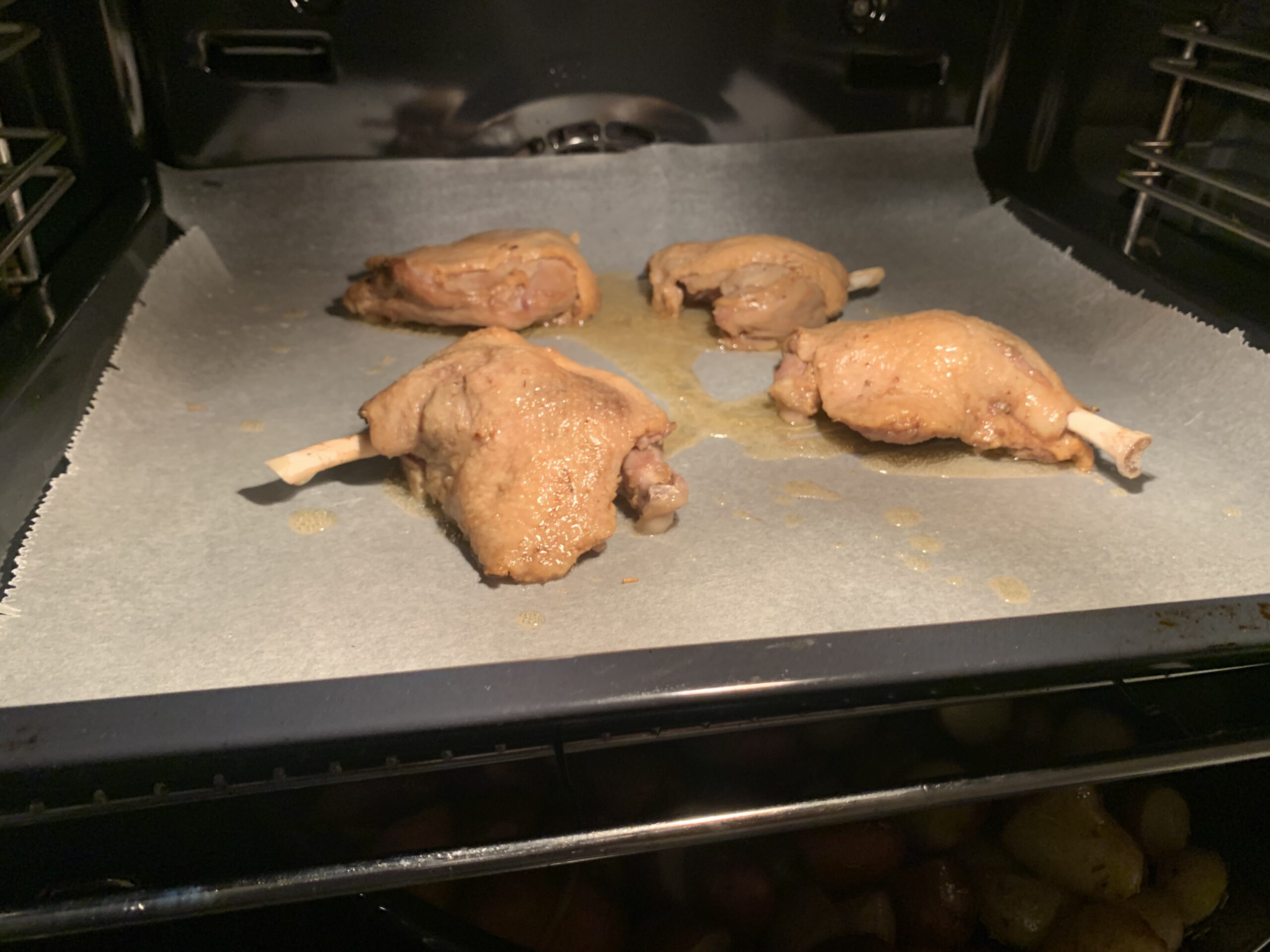 Gooi dit niet weg! Ik herhaal: gooi dit NIET weg. Schenk dit eendenvet in een pot en/of afsluitbaar bakje en zet in de vriezer. Het kan dan als boter worden gebruikt of als je het even kort verwarmt als olie. Je kan dit gebruiken om bijvoorbeeld je aardappeltjes in te bakken. Geloof me, echt super lekker.