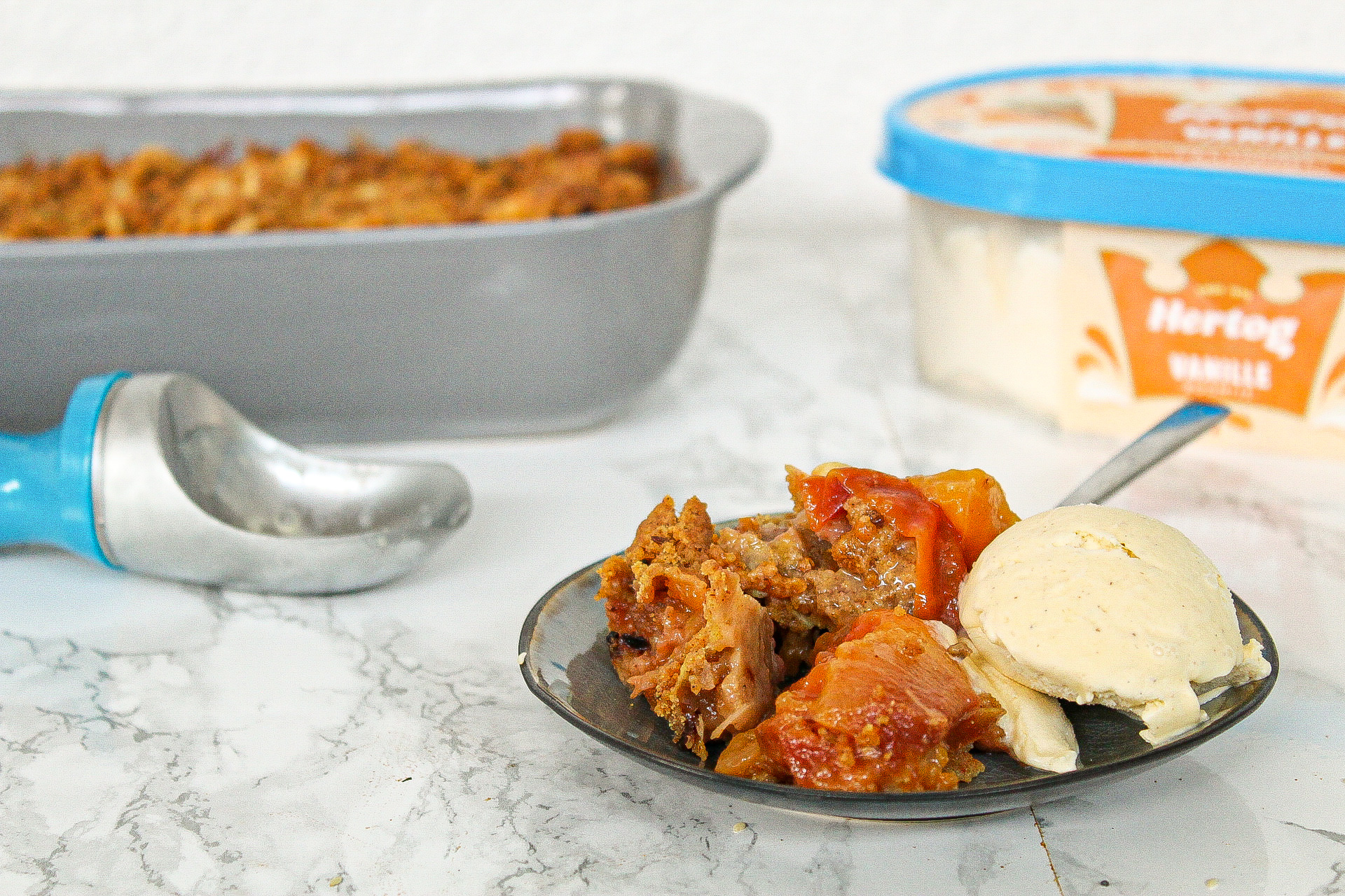 Tip: Lekker met een bolletje vanilleijs (zie foto).